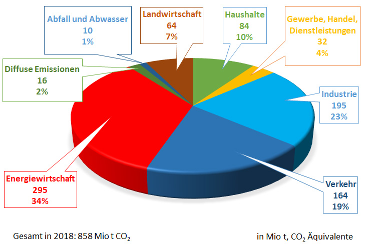Dabei kommt auch heute noch der größte Teil der Treibhausgasemissionen aus der Energiewirtschaft und der Stromerzeugung !