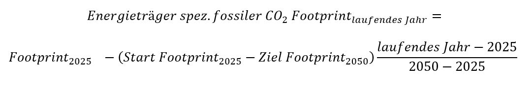 - Laufendes Jahr: beliebiges Jahr zwischen den Jahren 2025 und 2050 mit individuellem CO2 Ziel